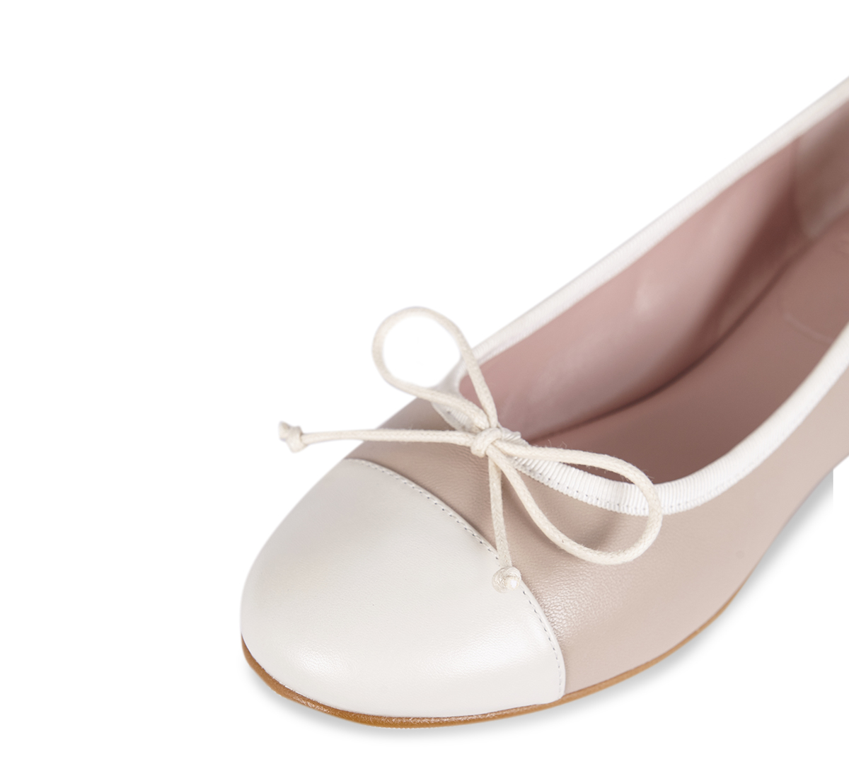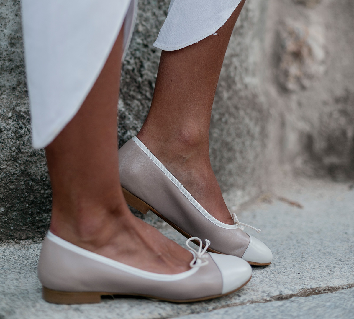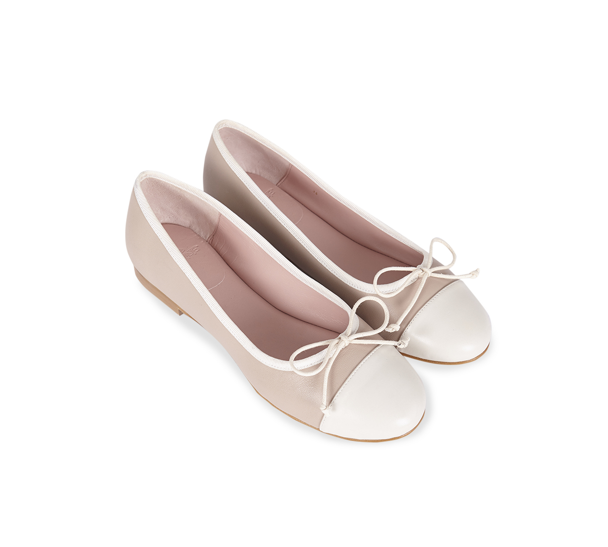 Bailarina “Horma Guante” color piedra puntera crudo lazo y ribete al tono crudo.