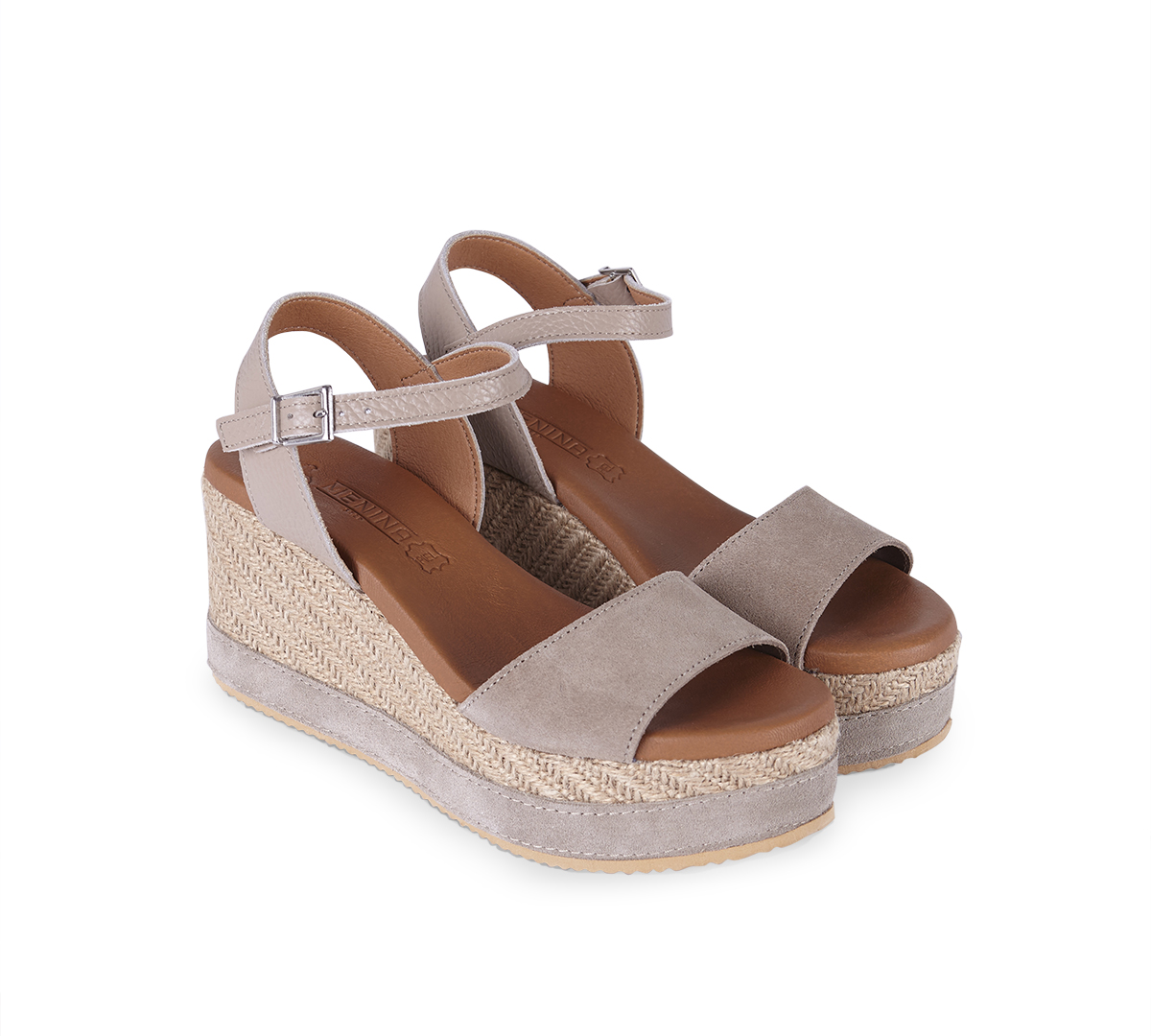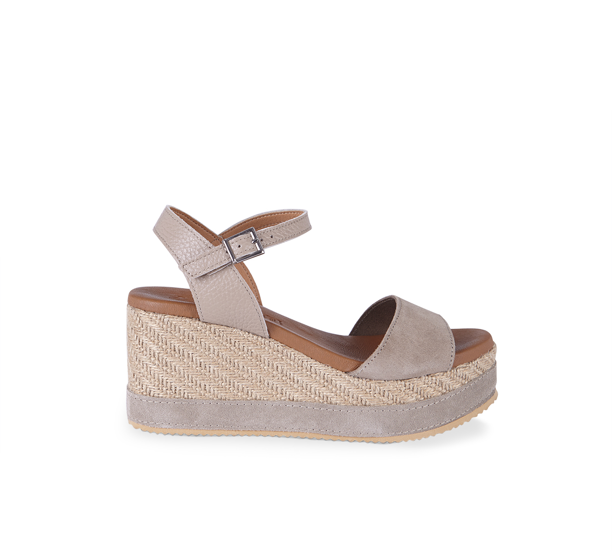 – Cuña, serraje de primera calidad con punta redonda. Trasera en piel vacuno al tono atada al tobillo para más estabilidad. Pieles 100% primera calidad.