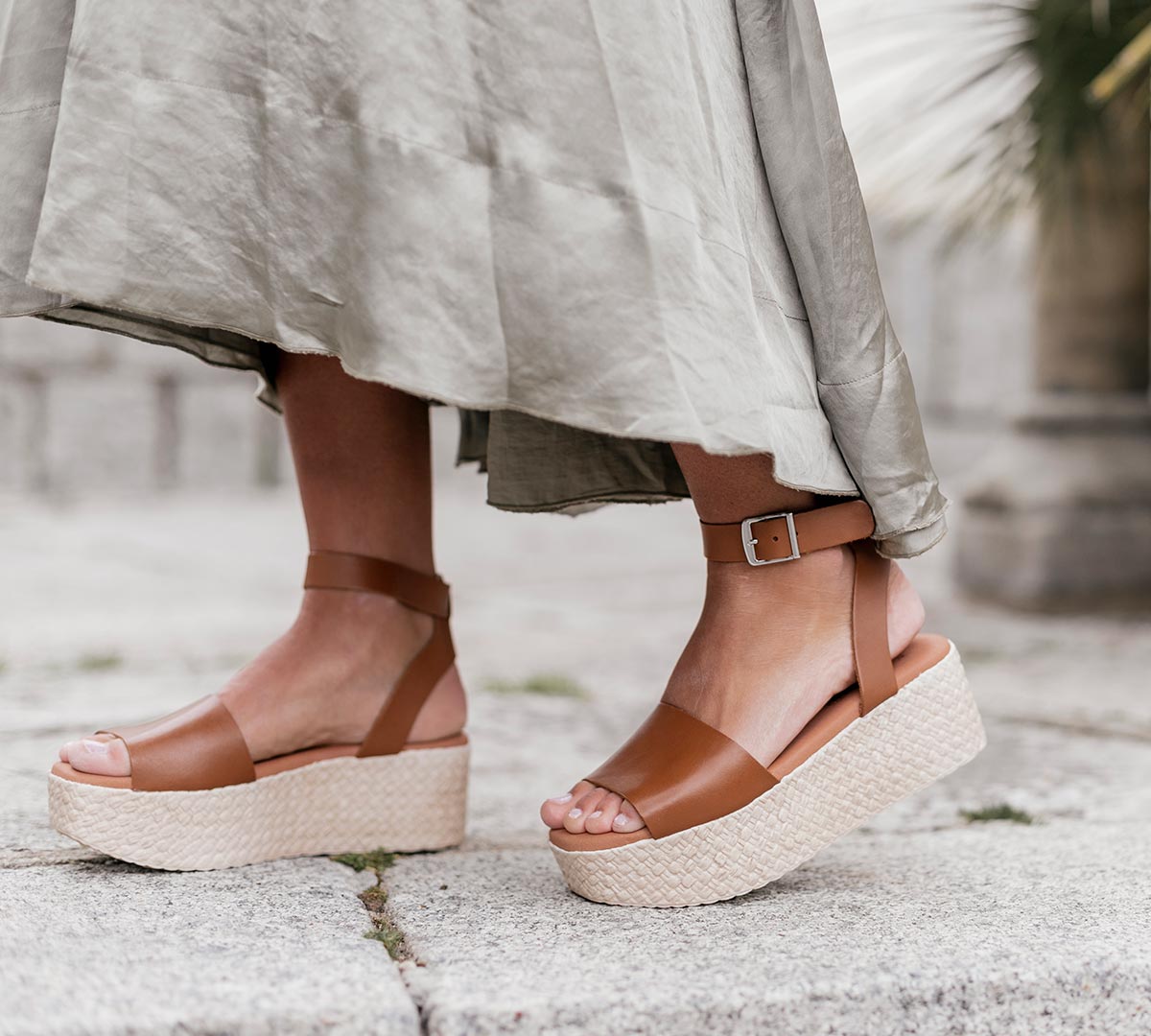 – Sandalia con tiras de piel de 5cm, 100% vacuno con ligera punta cuadrada no muy marcada.