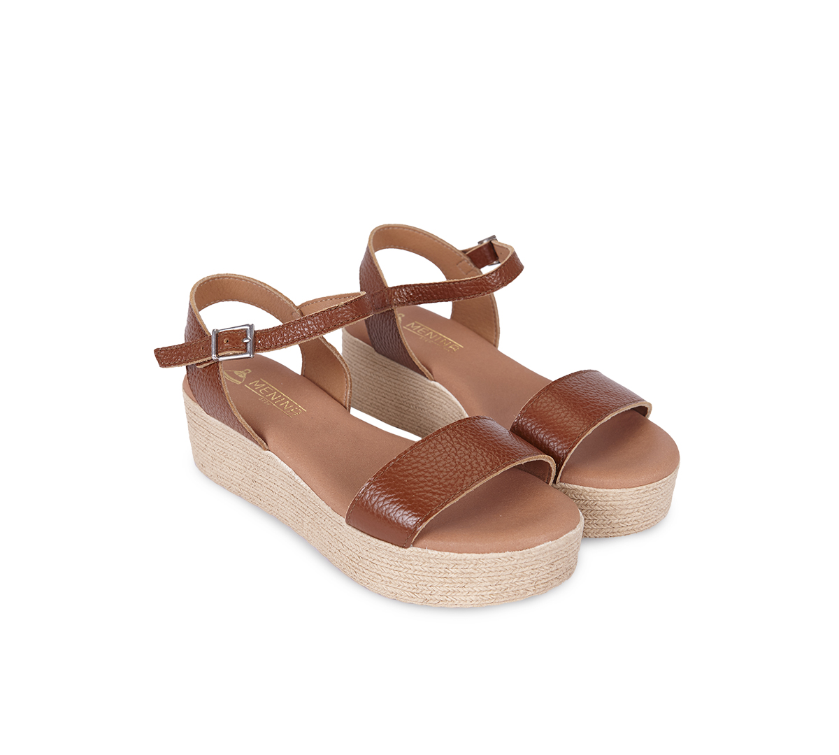 – Cuña con tira frontal de piel de 3cm, 100% vacuno con punta redonda. Remata al tobillo con tira de 1cm con hebilla ajustable para más estabilidad.
