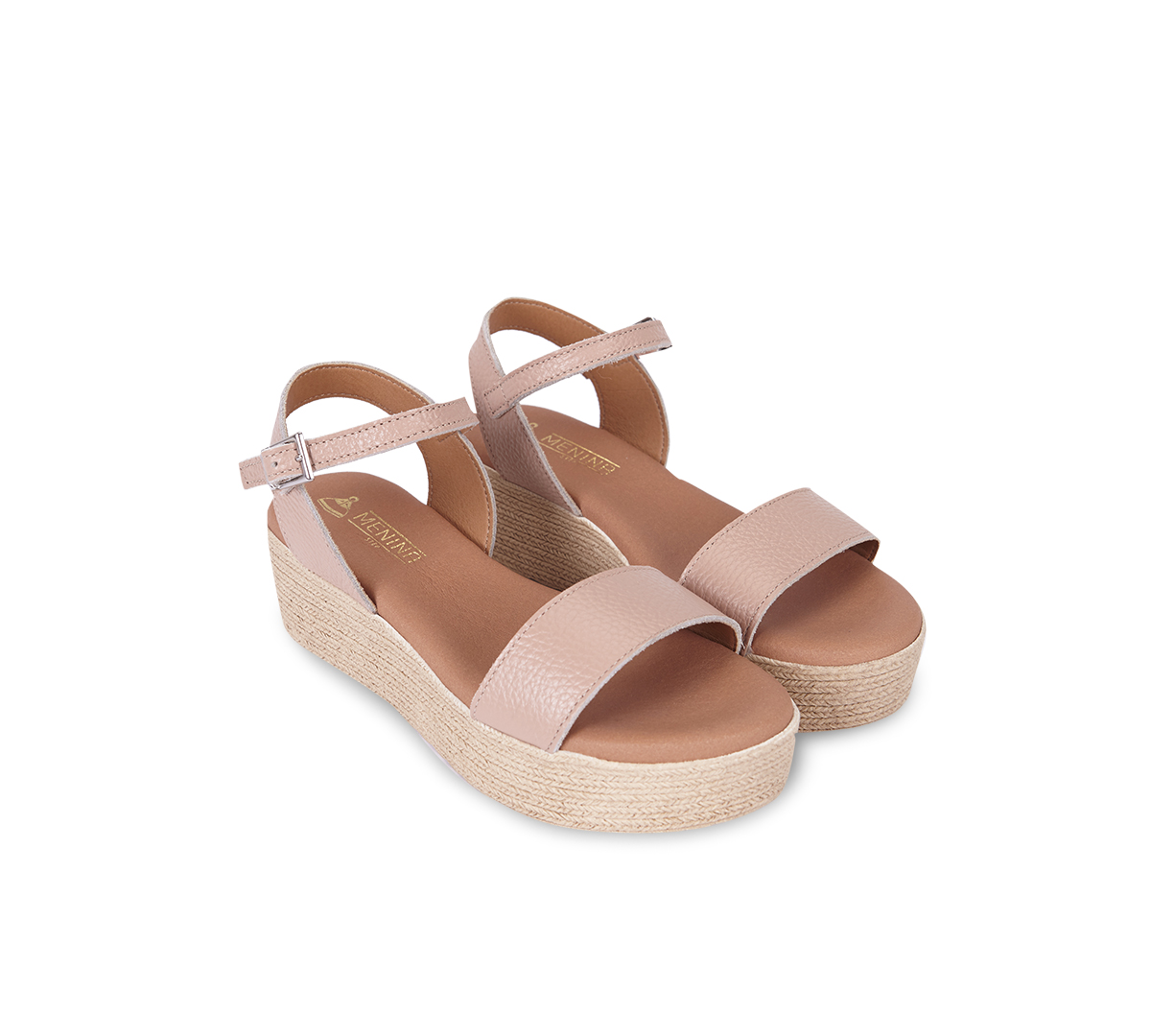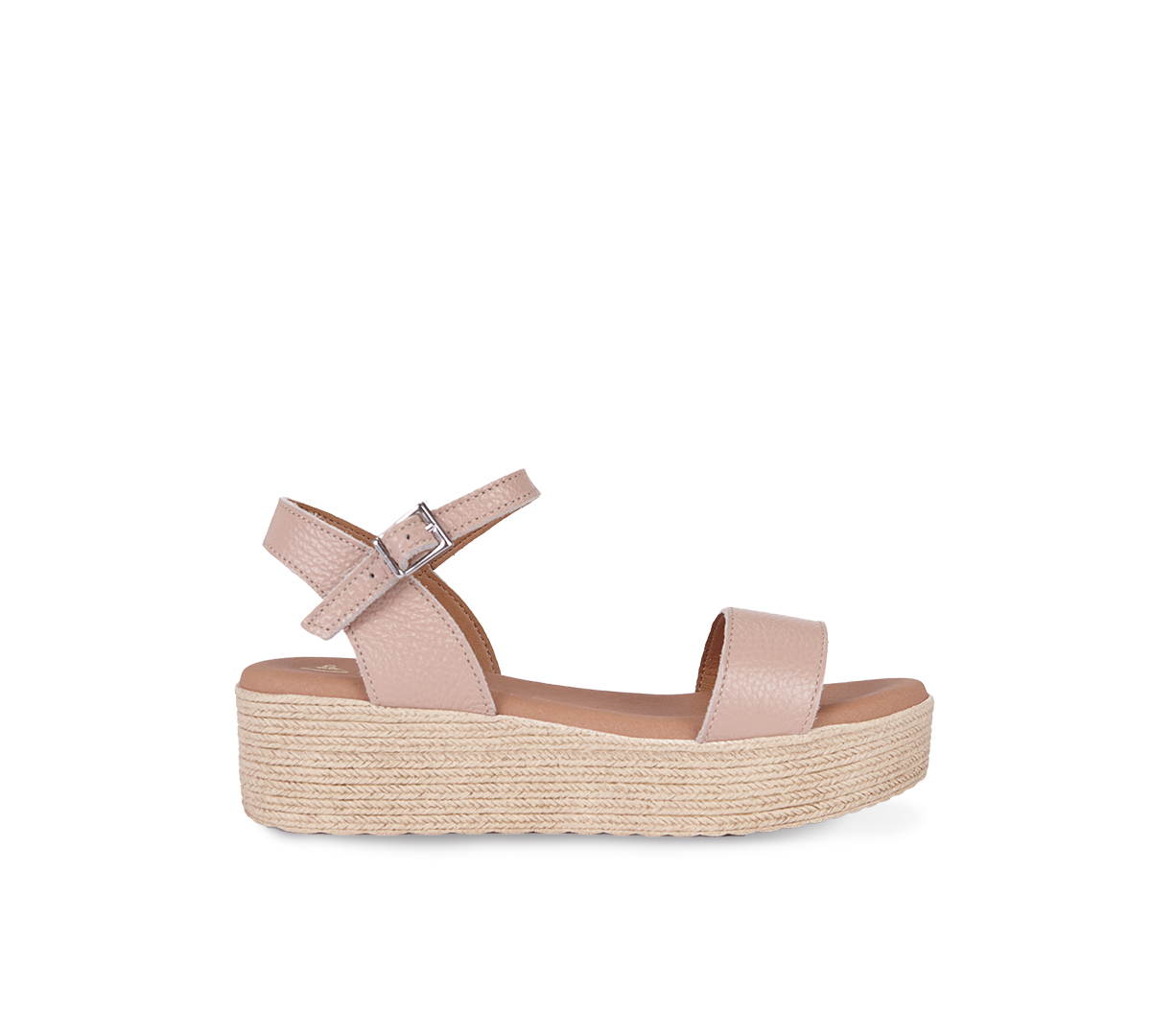 – Cuña con tira frontal de piel de 3cm, 100% vacuno con punta redonda. Remata al tobillo con tira de 1cm con hebilla ajustable para más estabilidad.