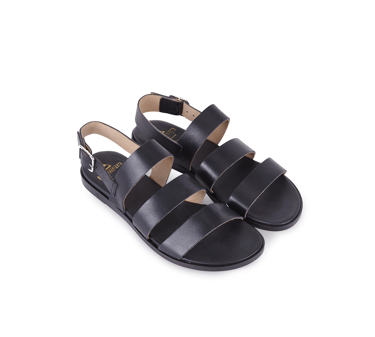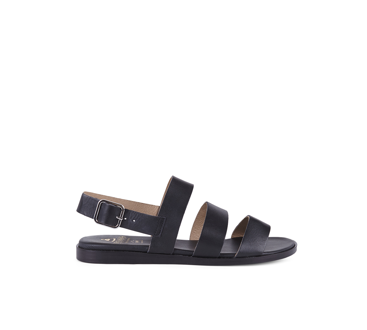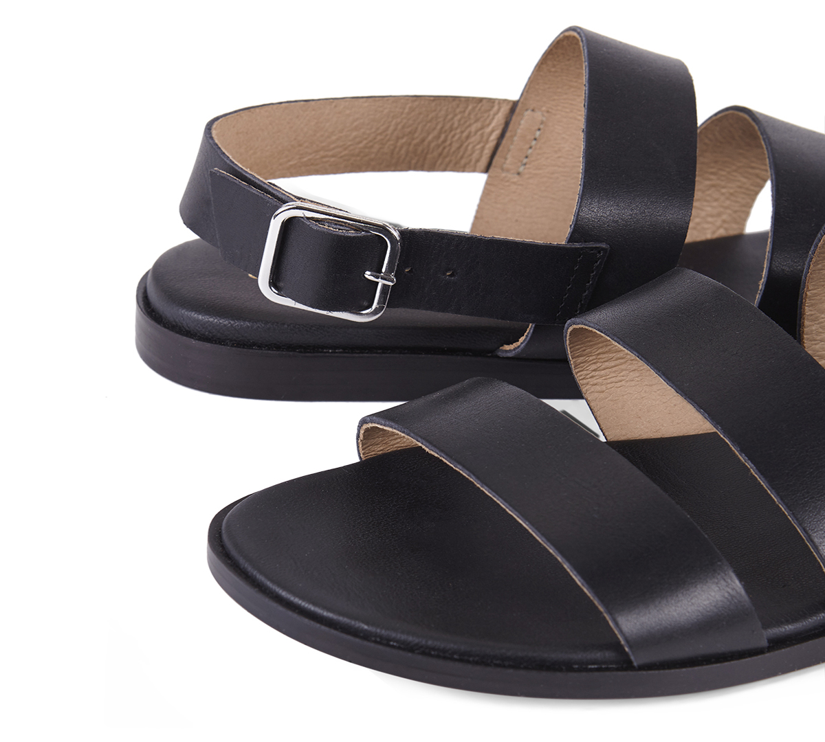 – Tres bandas en la parte superior que rematan en hebilla lateral. El conjunto da sujeción y comodidad al pie 100%