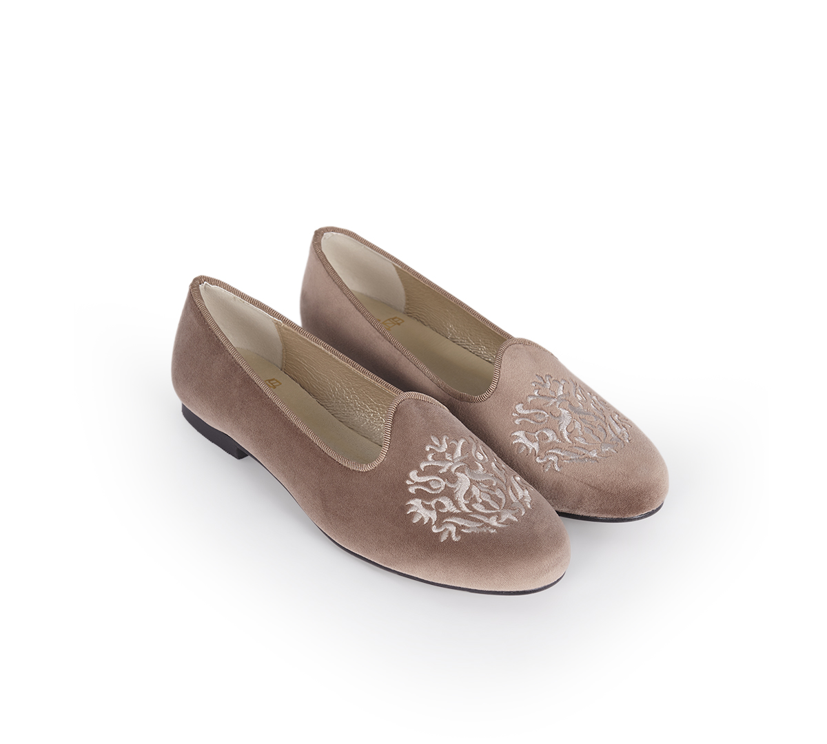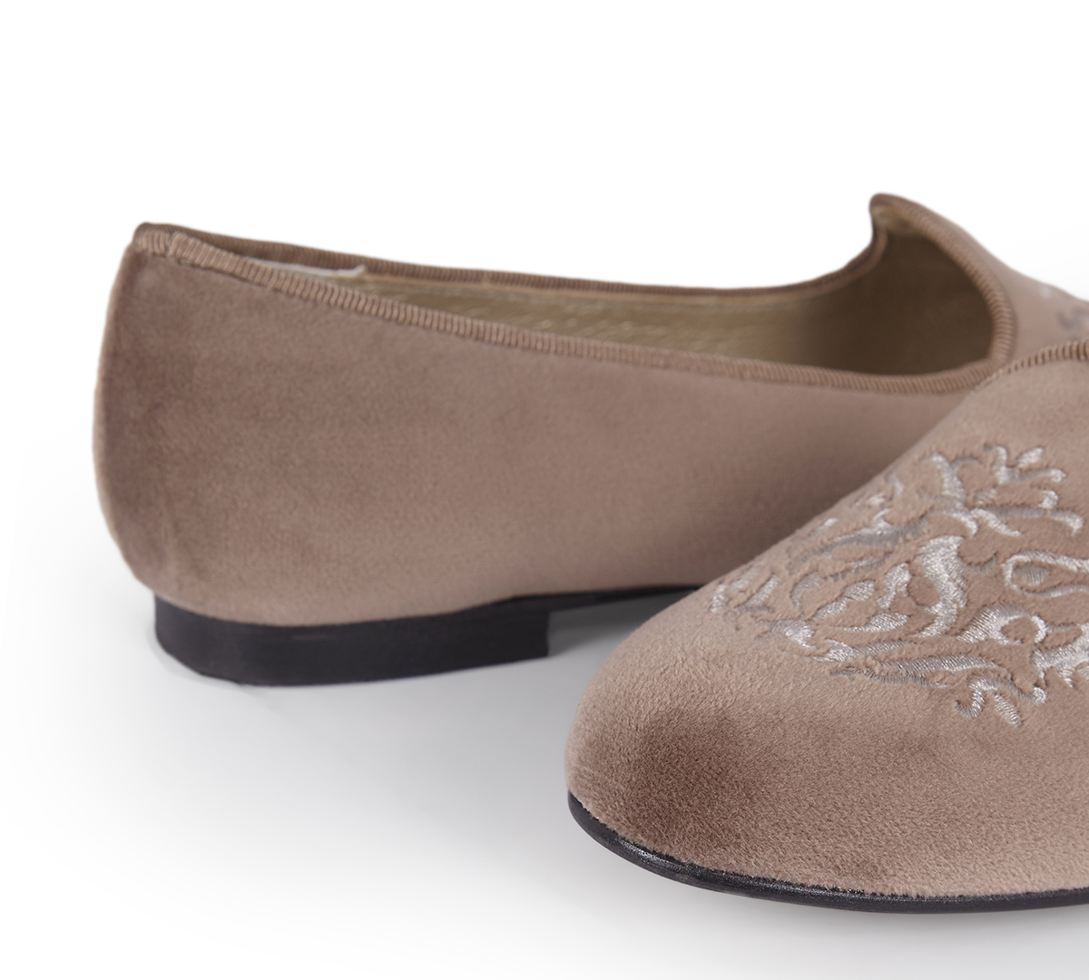 – 100% terciopelo de seda verde con escudo bordado al tono en parte frontal